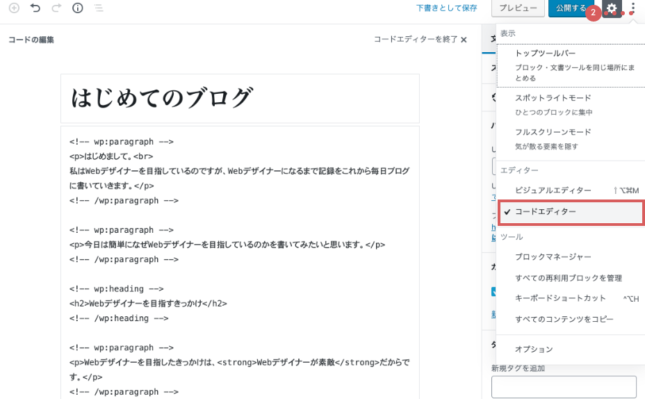 WordPRessでは見出しや強調などののタグを、簡単につけることができる。