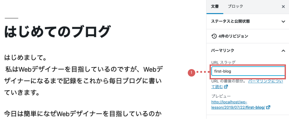 パーマリンクはそのままURLになるため、記事を公開する前に指定し、公開後も変更しないほうがよい。