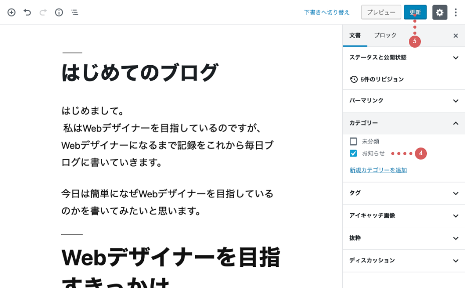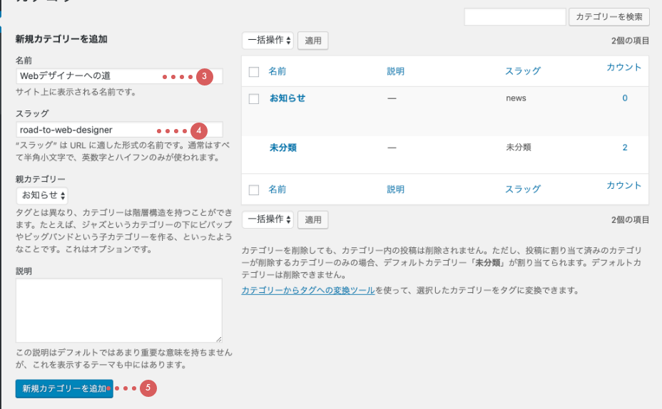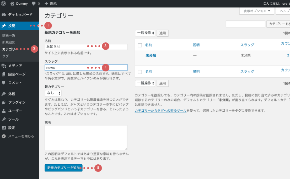 選択しないまま投稿する「未分類」というカテゴリーになる。
