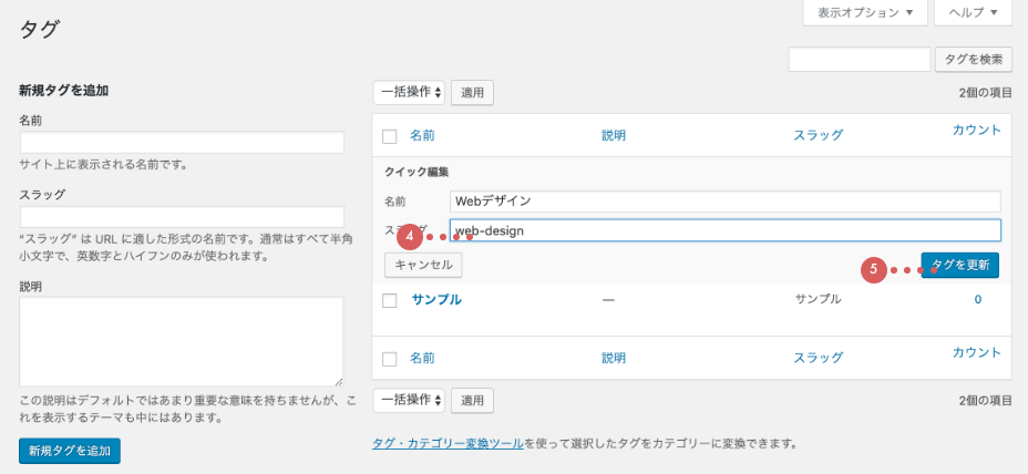 タグはカテゴリとよく似ているが、親子関係を持たせることはできない。