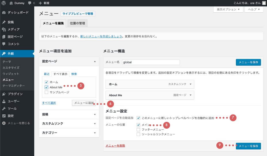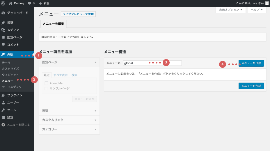 WordPressには「カスタムメニュー」という自由にメニューを設定できる機能がある。