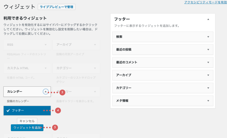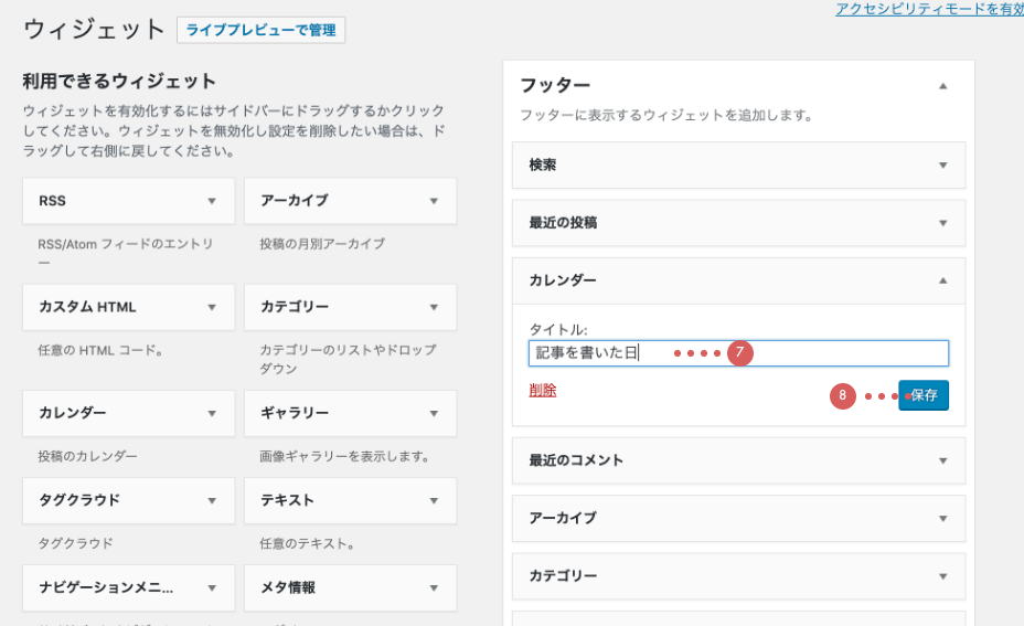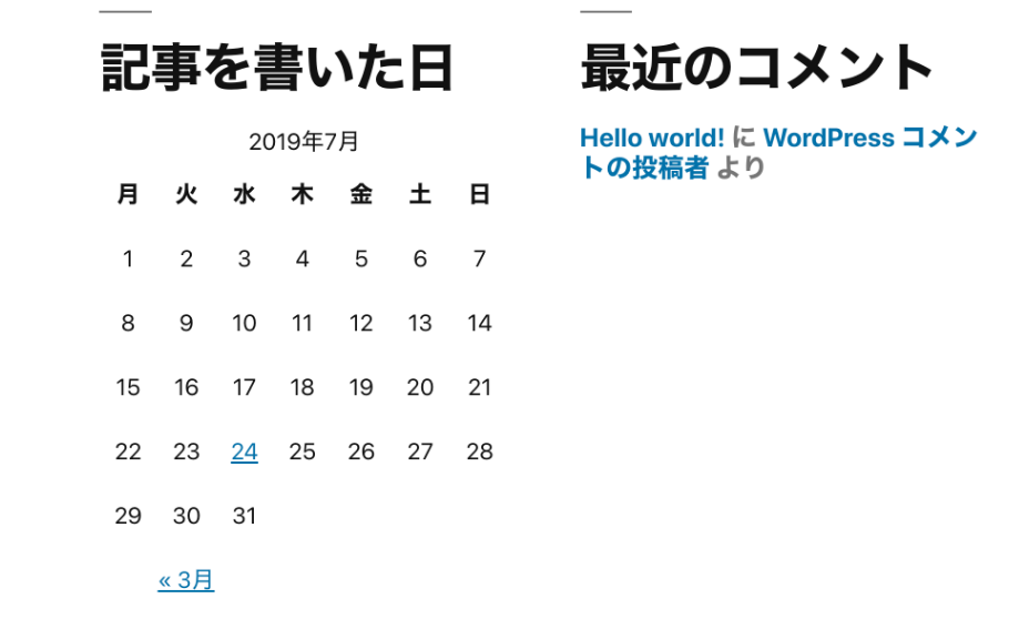 「最近の投稿」の一覧や「カテゴリー」の一覧を表示したりができる。