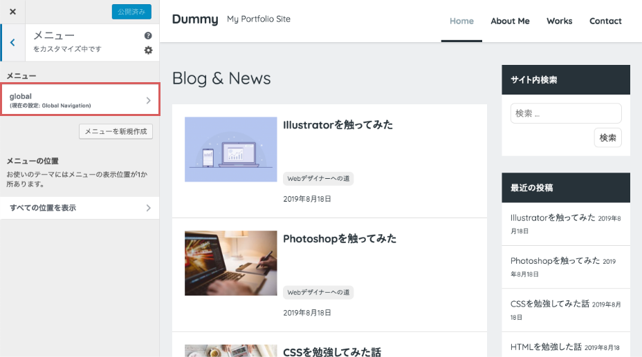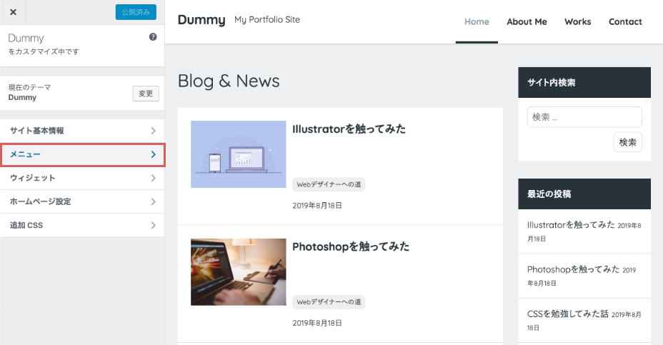 自動的にメニューにも追加されるように設定している。