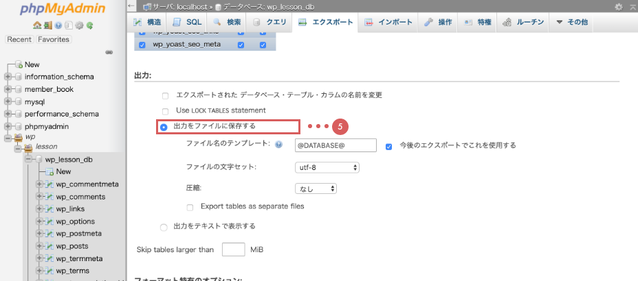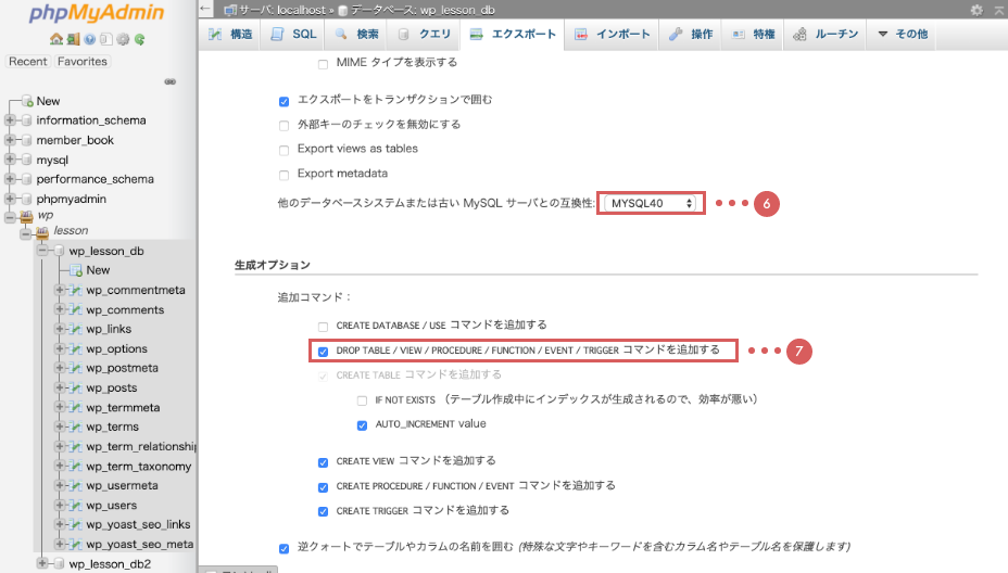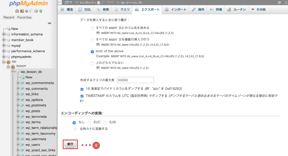 まずは、ローカルにあるWordPressのデータベースをエクスポートする。