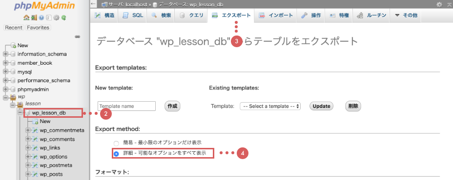 エクスポートは「phpMyAdmin」を使うと簡単にできる。
