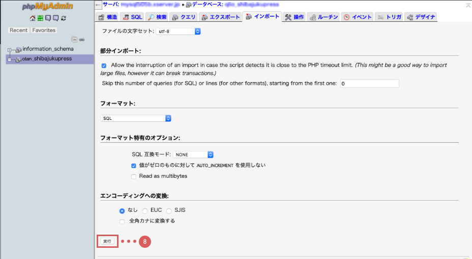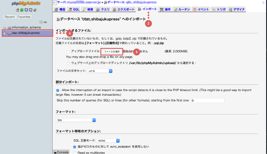 エクスポートしたSQLファイルは、本番環境のデータベースにインポートする。