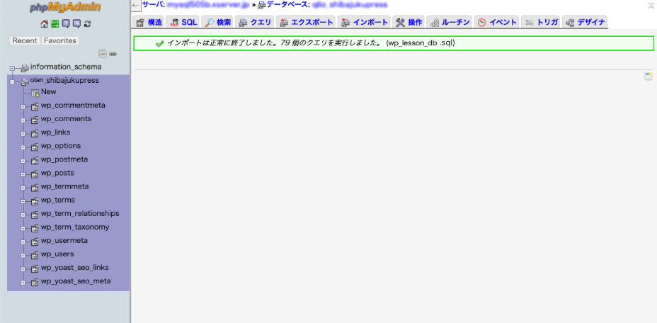 なお、すでに運営されいてるデータベースにインポートしてしまった場合は、