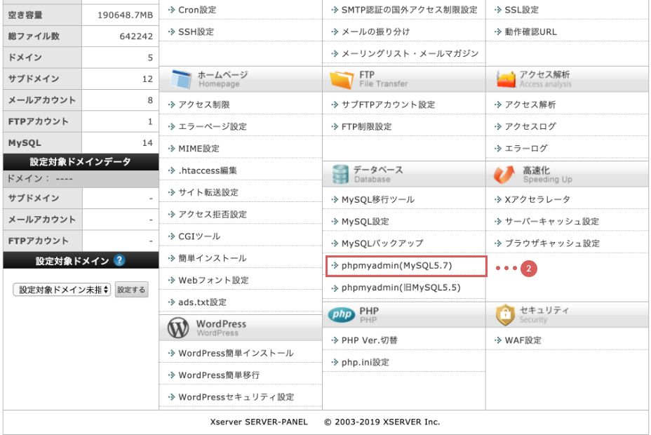 多くのレンタルサーバでは、「phpMyAdmin」が使えるで比較的容易にインポートすることができる。